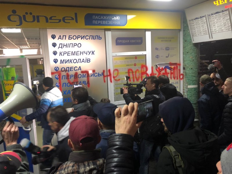 По информации издания, активисты собрались на территории автовокзала, они требуют встречи с директором предприятия. Члены С14 утверждают, что перевозчики отказывают возить участников АТО. Также в организации обращают внимание на рекламу автобусных перевозок в ОРДЛО и оккупированный Крым, которые, по их мнению, осуществляться не должны. Активисты разрисовали стены здания, оставив на них послания: "Тут не уважают бойцов", "Уважайте бойцов".