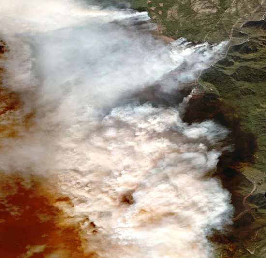 Спутник Landsat 8 заснял крупнейший лесной пожар Camp Fire в штате Калифорния (США). Снимки были сделаны в четверг, 8 ноября и опубликованы на ресурсе Space.com.