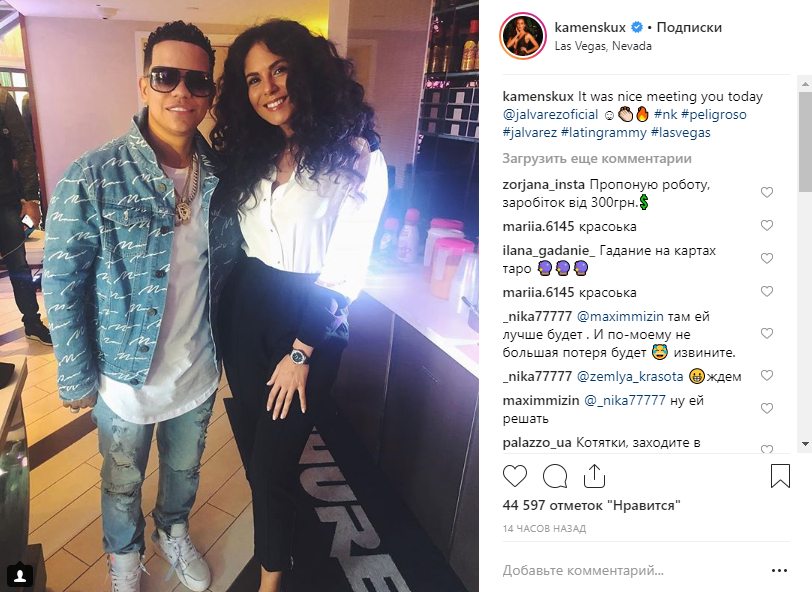 Украинская певица Настя Каменских поразила поклонников фото с латиноамериканским певцом в Вегасе