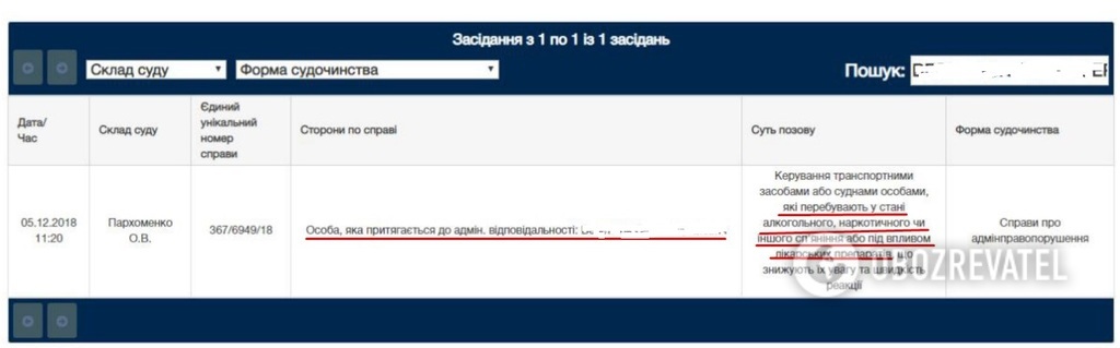 По данным издания, в конце сентября 2018 года мужчину остановили сотрудники Ирпенского отделения полиции, несмотря на явные признаки опьянения, от прохождения медицинского освидетельствования он отказался. Кроме того, у водителя не было прав соответствующей категории и документов на авто. Тогда правоохранители составили протокол за пьяное вождение и оштрафовали за отсутствие страховки на 425 грн.
