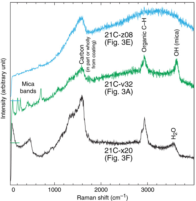 Spectra from three grains shown in Fig. 3, with labeled band peaks. Фото: advances.sciencemag.org