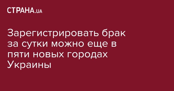 Отныне в Бердичеве, Новограде-Волынском, Калуше, Шостке, Корюковке можно будет воспользоваться пилотным проектом и зарегистрировать брак в сокращенные сроки по выбранному женихом и невестой месте, передает ЮрЛига.
