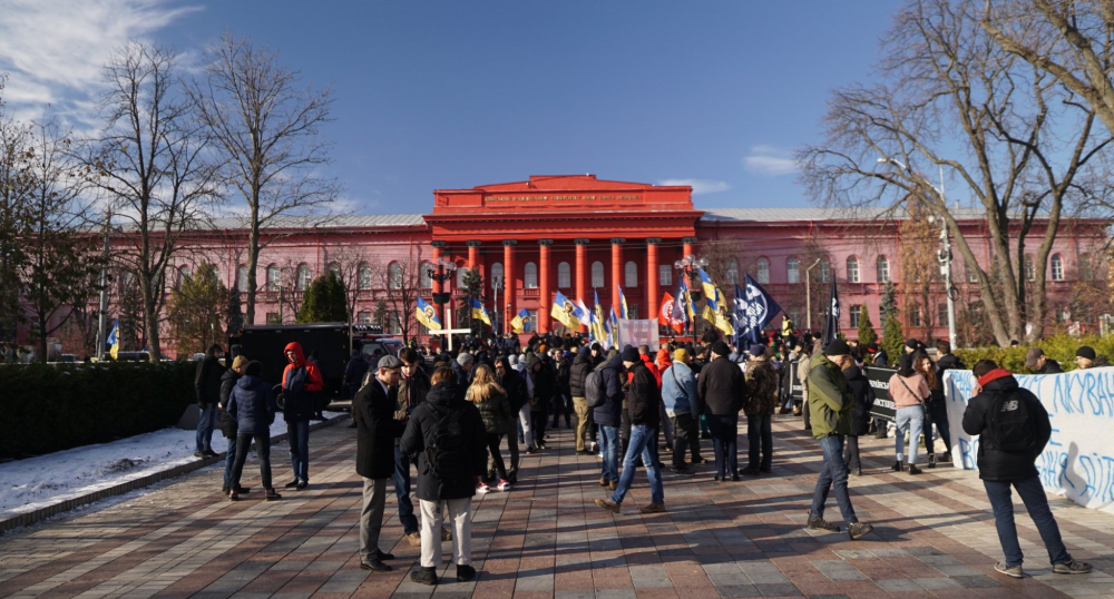Изначально проведение марша планировали на Михайловской площади, но из-за угроз его перенесли к красному корпусу университета Имени Шевченко.