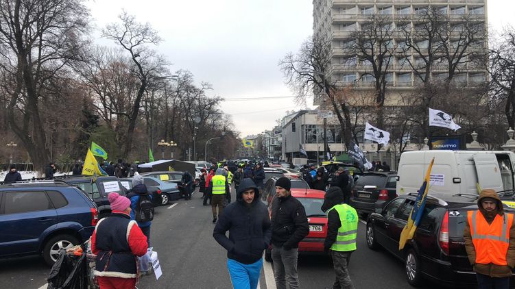 9:00  Участники протеста уже под Верховной Радой. Сейчас там около сотни автомобилей. Они перекрывают улицу Грушевского.