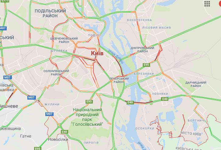9:15  В Киеве сейчас 7-балльные пробки. Обычный для такого времени суток трафик - видимо, акции пока не идут в полную силу.
