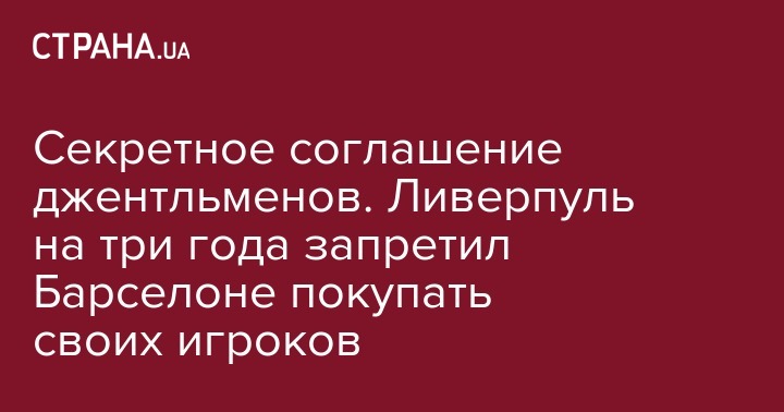 Как передает газета АS со ссылкой на радиостанцию Cadena SER, суть договоренности заключается в запрете на приобретение Барселоной игроков мерсисайдского клуба до 2021 года.