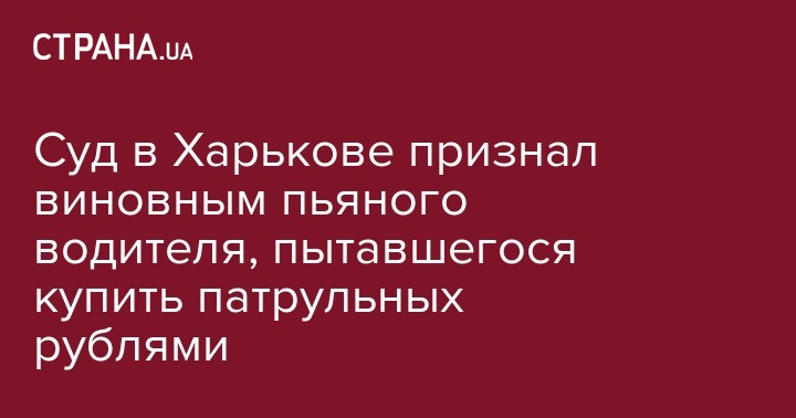 Московский райсуд Харькова признал виновным 31-летнего харьковчанина, пытавшегося подкупить патрульных, чтобы те не составляли на него протокол за вождение в состоянии алкогольного опьянения.