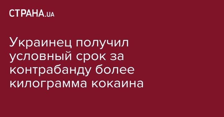 Пять лет лишения свободы условно получил украинец, который задержан в международном аэропорту "Борисполь" по обвинению в контрабанде 1,2 кг кокаина. Об этом сообщают "Украинские новости" со ссылкой на приговор суда.