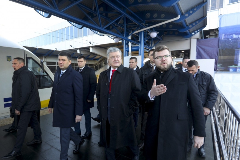 Участие в запуске поезда приняли президент Петр Порошенко, премьер Владимир Гройсман, министр инфраструктуры Владимир Омелян, и. о. главы правления "Укрзализныци" Евгений Кравцов. Все они проехались по маршруту от вокзала до станции "Борисполь - аэропорт".
