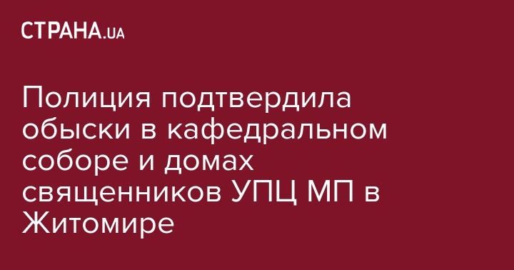 В полиции Житомирской области подтвердили факт проведения обысков в ряде объектов УПЦ МП, пишет сегодня пресс-служба полиции области.