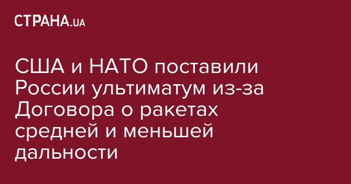 США и НАТО поставили России ультиматум из-за Договора о ракетах средней и меньшей дальности