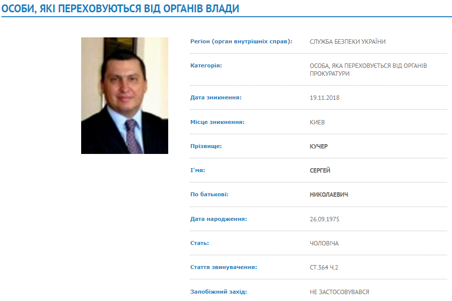 Служба безопасности Украины объявила в розыск бывшего начальника Инспекции архитектурно-строительного контроля в Киеве Сергея Кучера. Об этом сообщает пресс-служба МВД Украины.