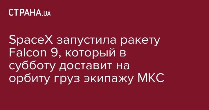 SpaceX запустила ракету Falcon 9, который в субботу доставит на орбиту груз экипажу МКС