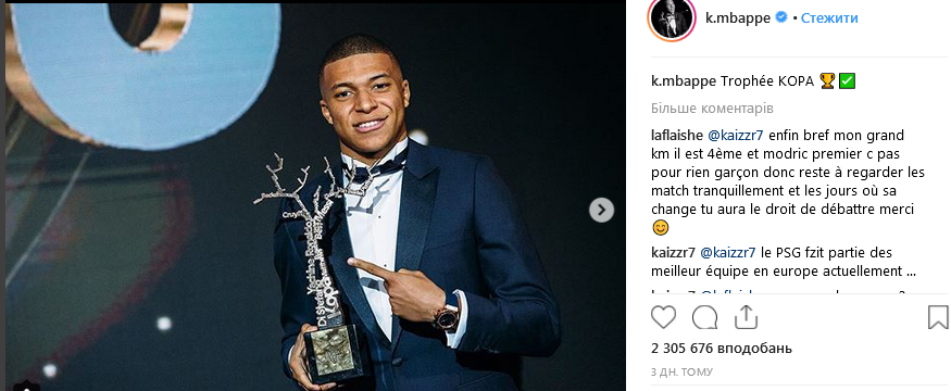 Напомним, что после получения награды Мбаппе скромно заявил, что не считает себя самым лучшим.