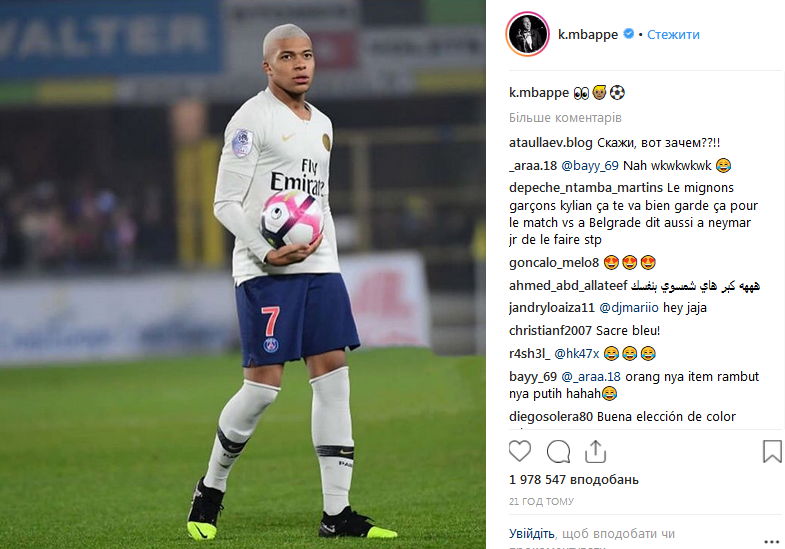 Игрок перекрасился в блондина и поделился фото с новой прической в своем Instagram.