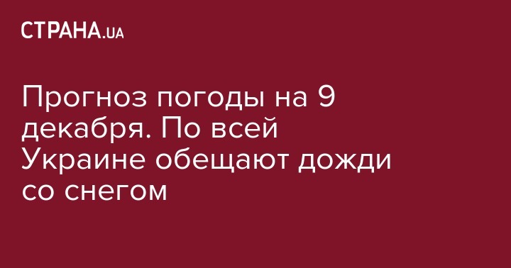 В воскресенье, 9 декабря, в Украине будет пасмурно. По всей стране будет идти дождь со снегом. Об этом свидетельствует прогноз погоды, опубликованный на сайте Укргидрометцентра