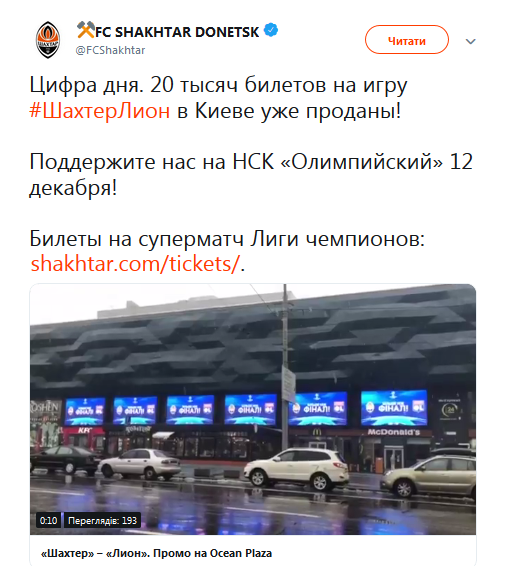 "Больше, чем финал". Шахтер за 4 дня продал 20 000 билетов на матч в Киеве против Лиона в Лиге чемпионов