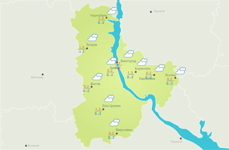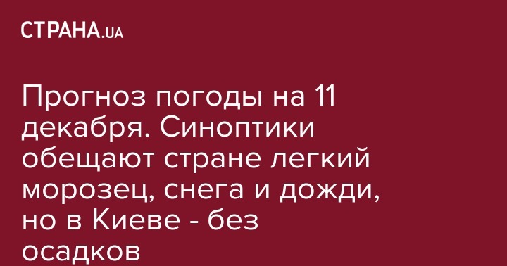 Сегодня, 11 декабря, в Киеве обещают облачную погоду без осадков. Такая погода продержится весь день. Днем температура воздуха будет не выше 0...+2 °C. Ночью столбик термометра опустится до -2 °C. Об этом сообщает Украинский гидрометцентр. Кстати, ночью в столице может пройти небольшой снег.
