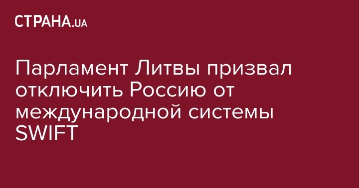 Парламент Литвы принял резолюцию, в которой предлагает расширить пакет санкций против России, включая возможность отключения всех ее банков от всемирной системы платежей и передачи информации SWIFT.