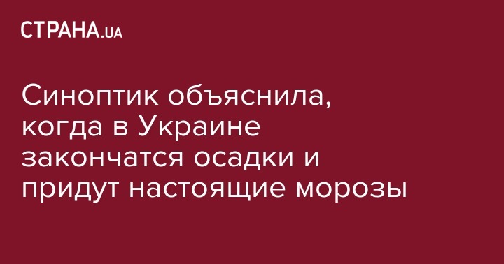 Но, по ее словам, на следующей неделе в Украине начнут доминировать морозы и сухая погода. Только в западных областях будет изредка выпадать мокрый снег.