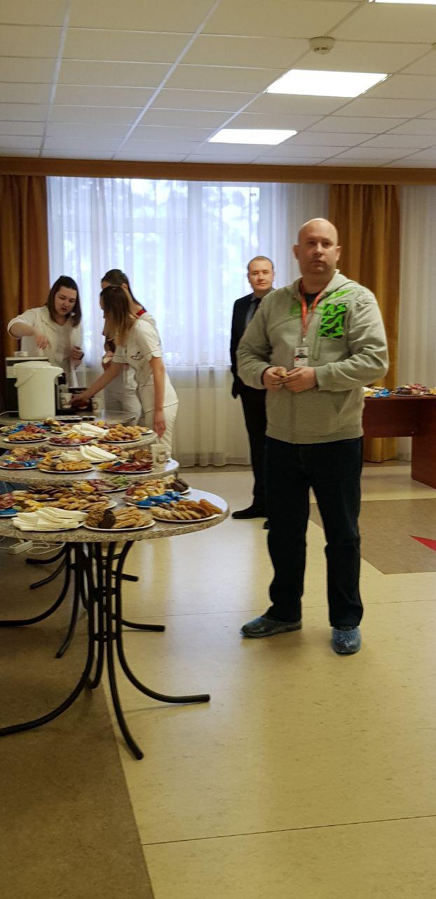 9:13 Для гостей, которых оказалось много, накрыты столы. Прямо как фуршет на избирательном участке.