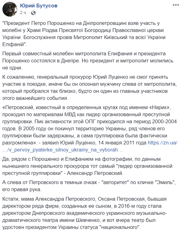 "На церковные события по Томосу Порошенко пригласил известных криминальных авторитетов. Видимо не хватало поддержки.