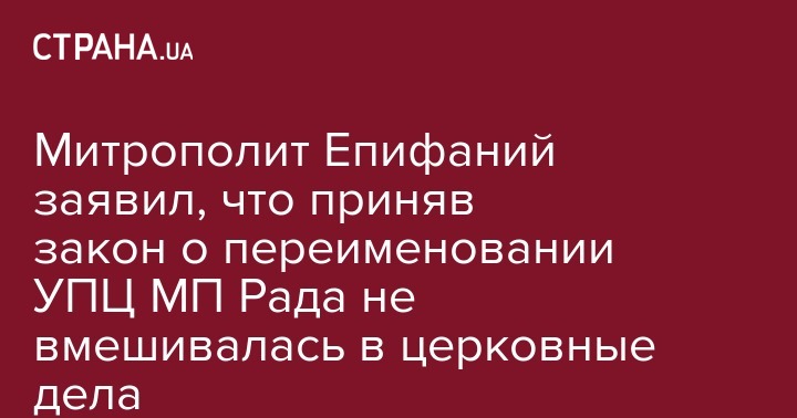 Митрополит Епифаний заявил, что приняв закон о переименовании УПЦ МП Рада не вмешивалась в церковные дела