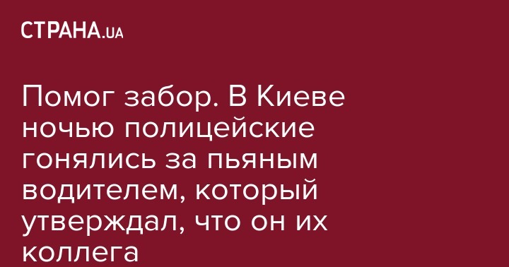 Помог забор. В Киеве ночью полицейские гонялись за пьяным водителем, который утверждал, что он их коллега