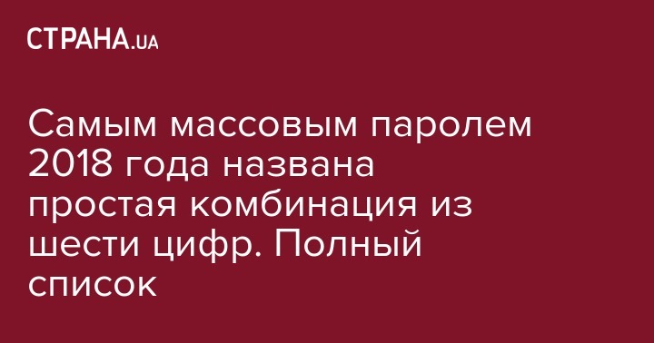 Самым массовым паролем 2018 года названа простая комбинация из шести цифр. Полный список