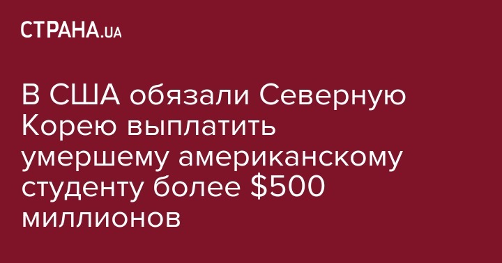 Окружной суд округа Колумбия (США) постановил, что Северная Корея должна выплатить $501 млн семье американского студента Отто Вомбиера, арестованного в КНДР, а позже скончавшегося. Об этом сообщает "Интерфакс-Украина" со ссылкой на Fox News.