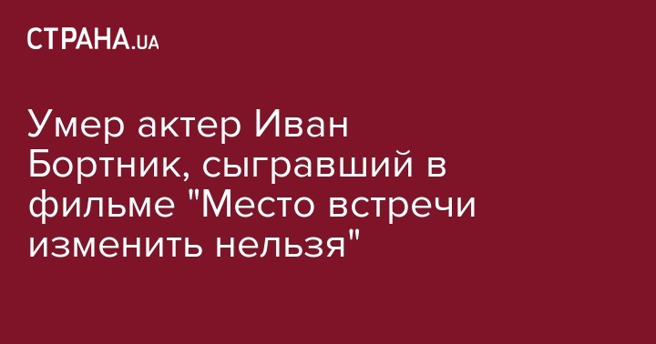 Умер актер Иван Бортник, сыгравший в фильме "Место встречи изменить нельзя"