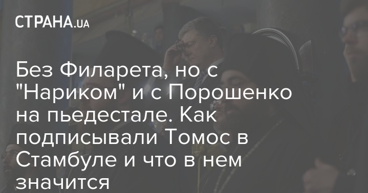 Подписание Томоса состоялось в патриаршем храме Святого Георгия. Там отслужили торжественный молебен. Из первоиерархов ПЦУ на него прибыли глава новой церкви Епифаний и член ее Синода - бывший митрополит Винницкий Симеон.