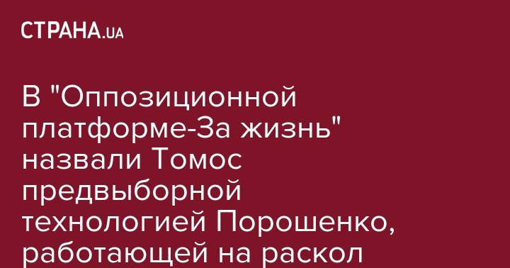 В "Оппозиционной платформе-За жизнь" назвали Томос предвыборной технологией Порошенко, работающей на раскол страны