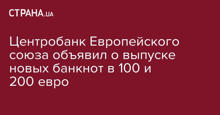 Центробанк Европейского союза объявил о выпуске новых банкнот в 100 и 200 евро