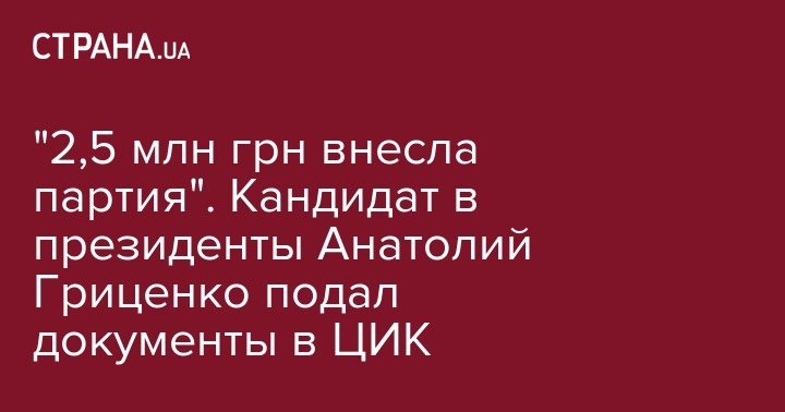 "Залог 2,5 млн грн внесла партия, это средства наших партийцев, в том числе мои собственные 100 тыс грн", - написал Анатолий Гриценко.
