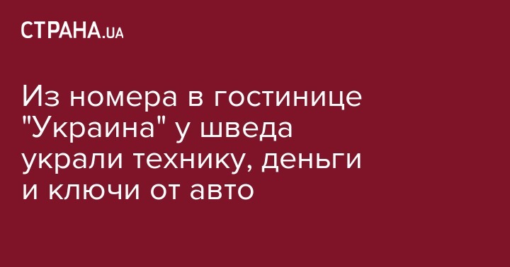 У шведа украли дорогостоящий ноутбук, ключи от авто,которое осталось ждать его в аэропорту Стокгольма на стоянке и все наличные деньги (сумма уточняется). Шведский подданный был шокирован подобным и долго не верил, что воры могут так спокойно влезть в номер и орудовать в гостинице в центре Киева.