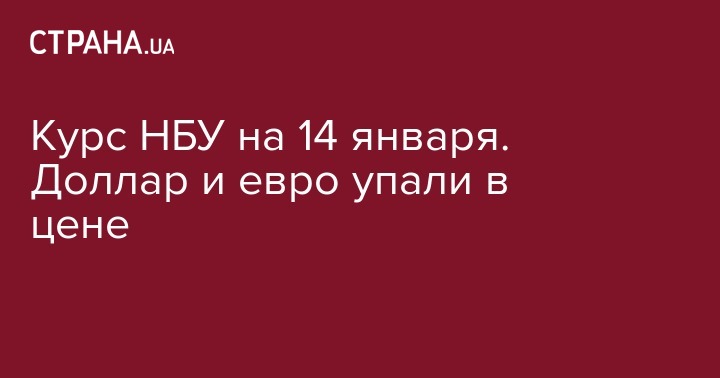 Национальный банк Украины (НБУ) установил на понедельник, 14 января, курс основных валют по отношению к гривне. Об этом сообщается на сайте регулятора.