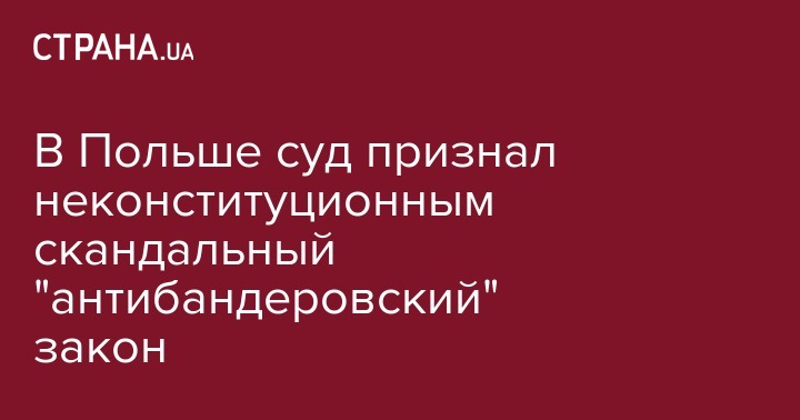 В четверг, 17 января, Конституционный суд Польши признал некоституционными поправки скандального закона "Про Институт национальной памяти РП", который также известен как "антибандеровский", в части, которая касается преступлений "украинских националистов". Об этом сообщает Onet.pl.