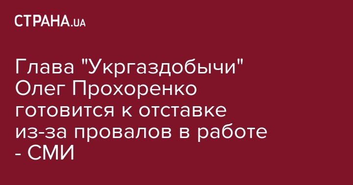 Из-за проваленного плана по добыче газа глава государственной компании "Укргаздобыча" Олег Прохоренко готовится объявить о своей отставке. Об этом со ссылкой на источники пишет "Громадське".