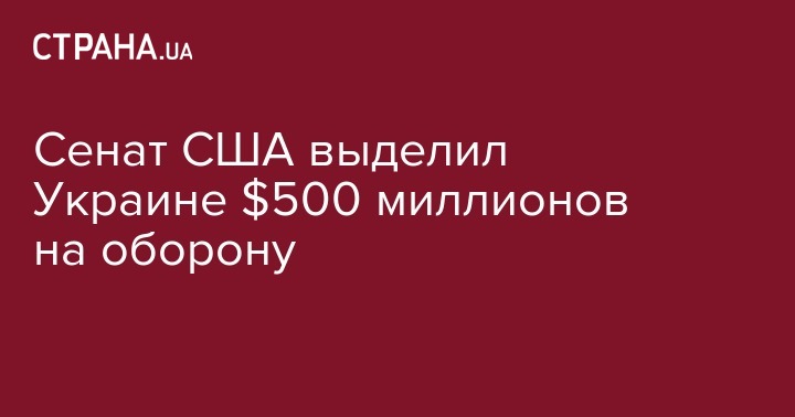 Сенат Конгресса США одобрил законопроект о бюджете Пентагона на 2017 год, в котором предусмотрена финансовая поддержка  Украины на оборонные нужды объемом до 500 млн долл., передает "Голос Америки".