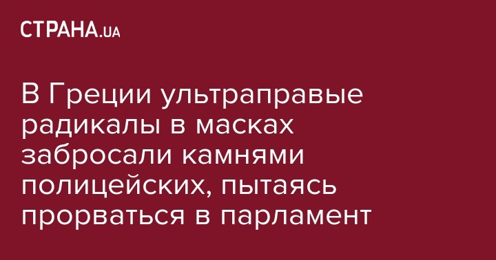 В Греции ультраправые из партии "Хриси Авги" ("Золотая заря") пытались прорваться в греческий парламент с масками на лицах и при помощи камней, палок и железных прутов, зачинщики беспорядков напали на полицейских. Об этом сообщает ТАСС.