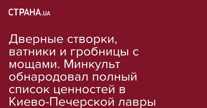 Дверные створки, ватники и гробницы с мощами. Минкульт обнародовал полный список ценностей в Киево-Печерской лавры