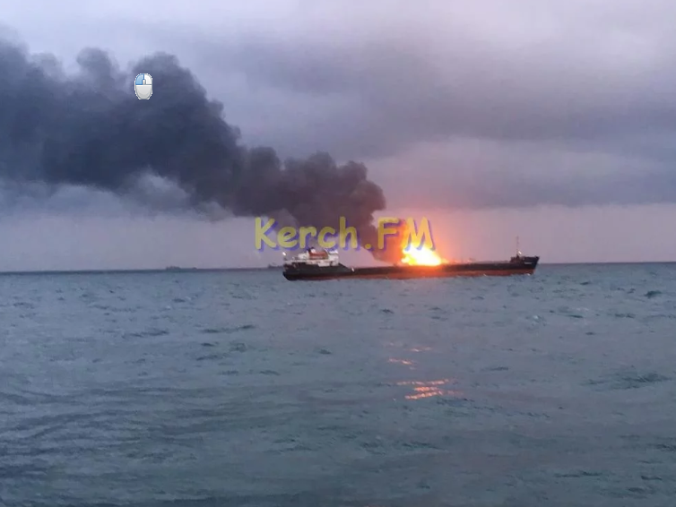 У входа в Керченский пролив в нейтральных водах горит судно. Огнем охвачена практически вся надводная часть. Об этом сообщает Керчь.ФМ.