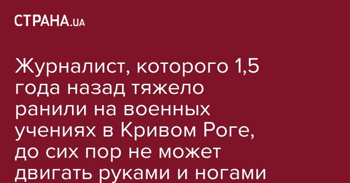 Журналист, которого 1,5 года назад тяжело ранили на военных учениях в Кривом Роге, до сих пор не может двигать руками и ногами