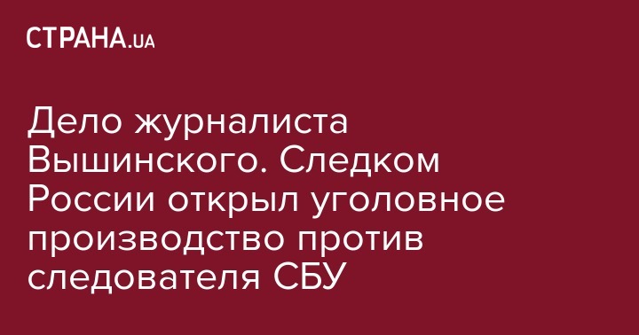 Следственный комитет РФ заподозрил следователя СБУ по делу о госизмене руководителя "РИА Новости-Украина" Кирилла Вышинского в "воспрепятствовании журналистской деятельности" и открыл против него дело. Об этом сообщает пресс-служба СК РФ.
