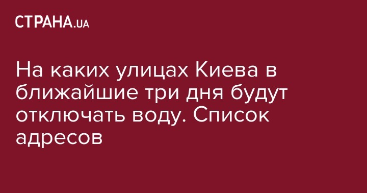 На каких улицах Киева в ближайшие три дня будут отключать воду. Список адресов