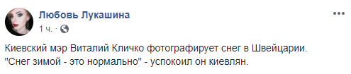 "Киевский мэр Виталий Кличко фотографирует снег в Швейцарии. "Снег зимой - это нормально" - успокоил он киевлян".