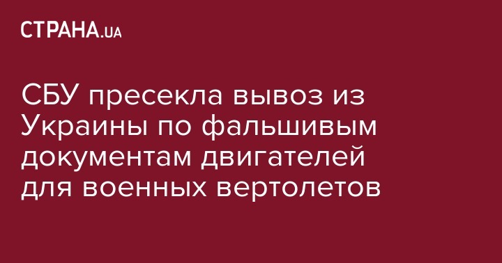 СБУ пресекла вывоз из Украины по фальшивым документам двигателей для военных вертолетов