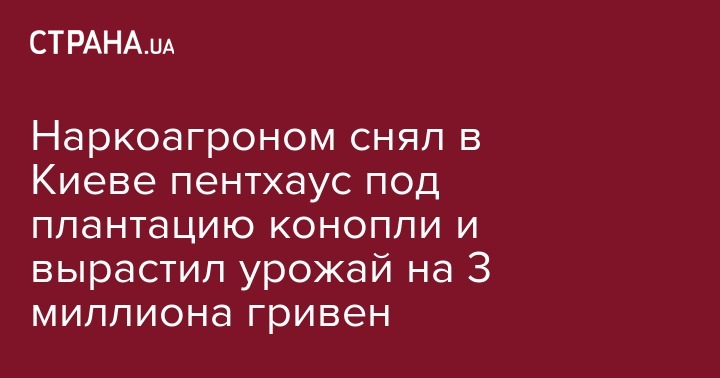 Наркоагроном снял в Киеве пентхаус под плантацию конопли и вырастил урожай на 3 миллиона гривен