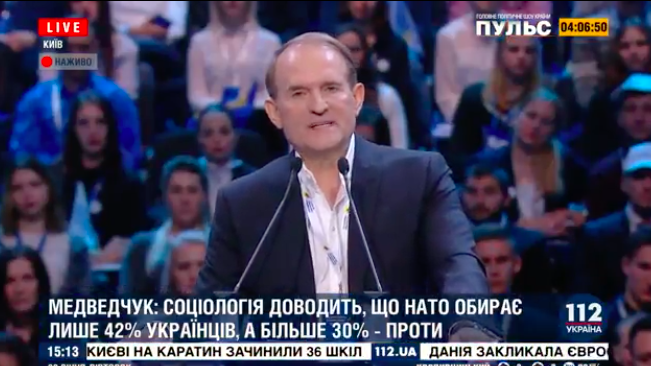 Медведчук выступил против вступления страны в НАТО и за восстановление полноценных отношений с Россией.